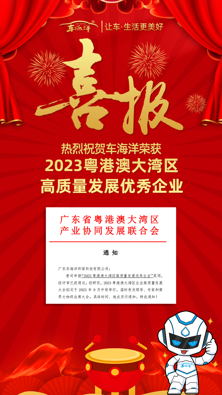 熱烈祝賀車海洋榮獲“2023粵港澳大灣區(qū)高質(zhì)量發(fā)展優(yōu)秀企業(yè)”!