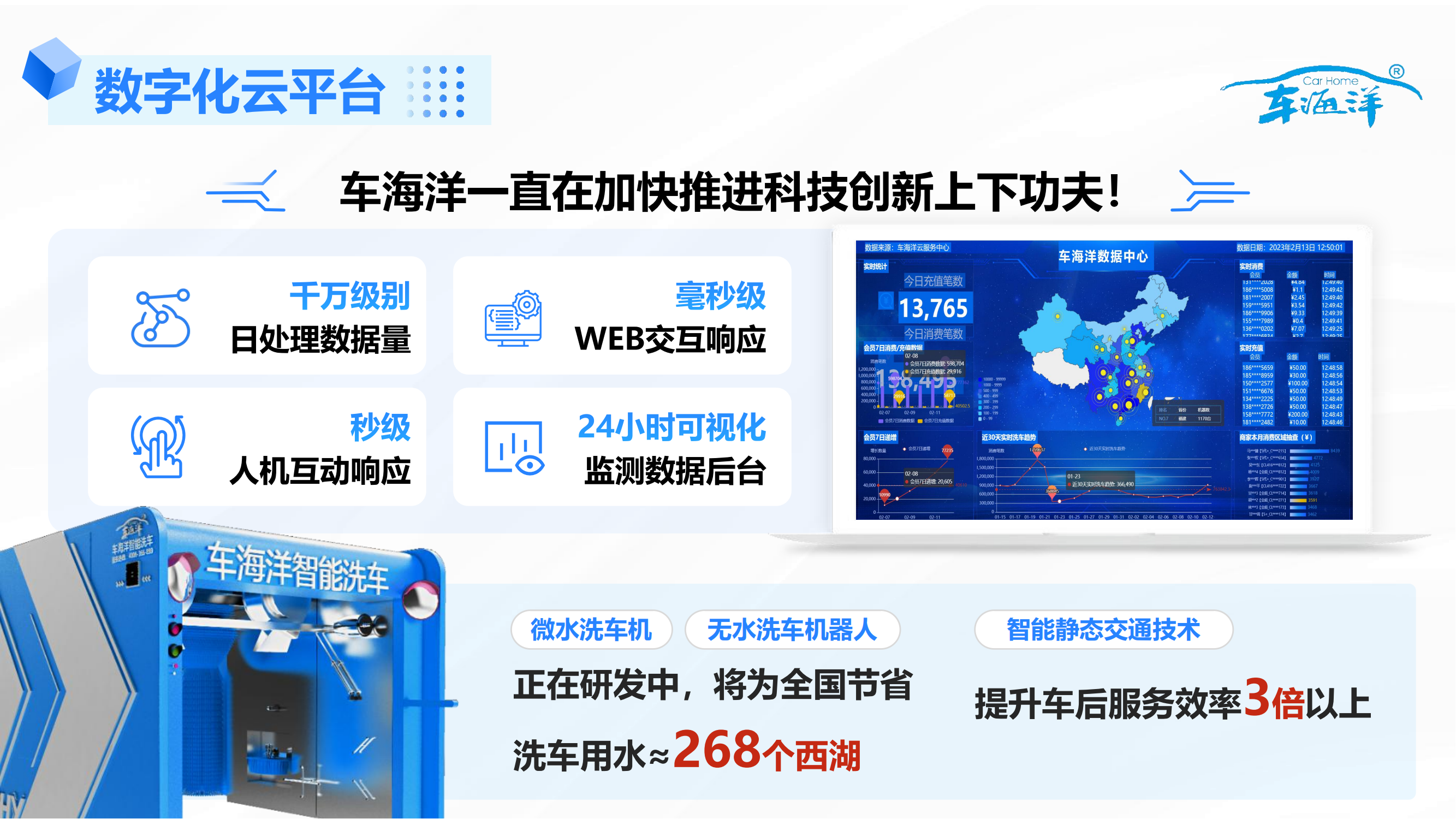 今年,我們將推出車海洋的微水洗車機(jī)、無(wú)水洗車機(jī)器人,開(kāi)創(chuàng)行業(yè)的先河,引領(lǐng)行業(yè)進(jìn)入無(wú)水時(shí)代!敬請(qǐng)大家關(guān)注與期待!