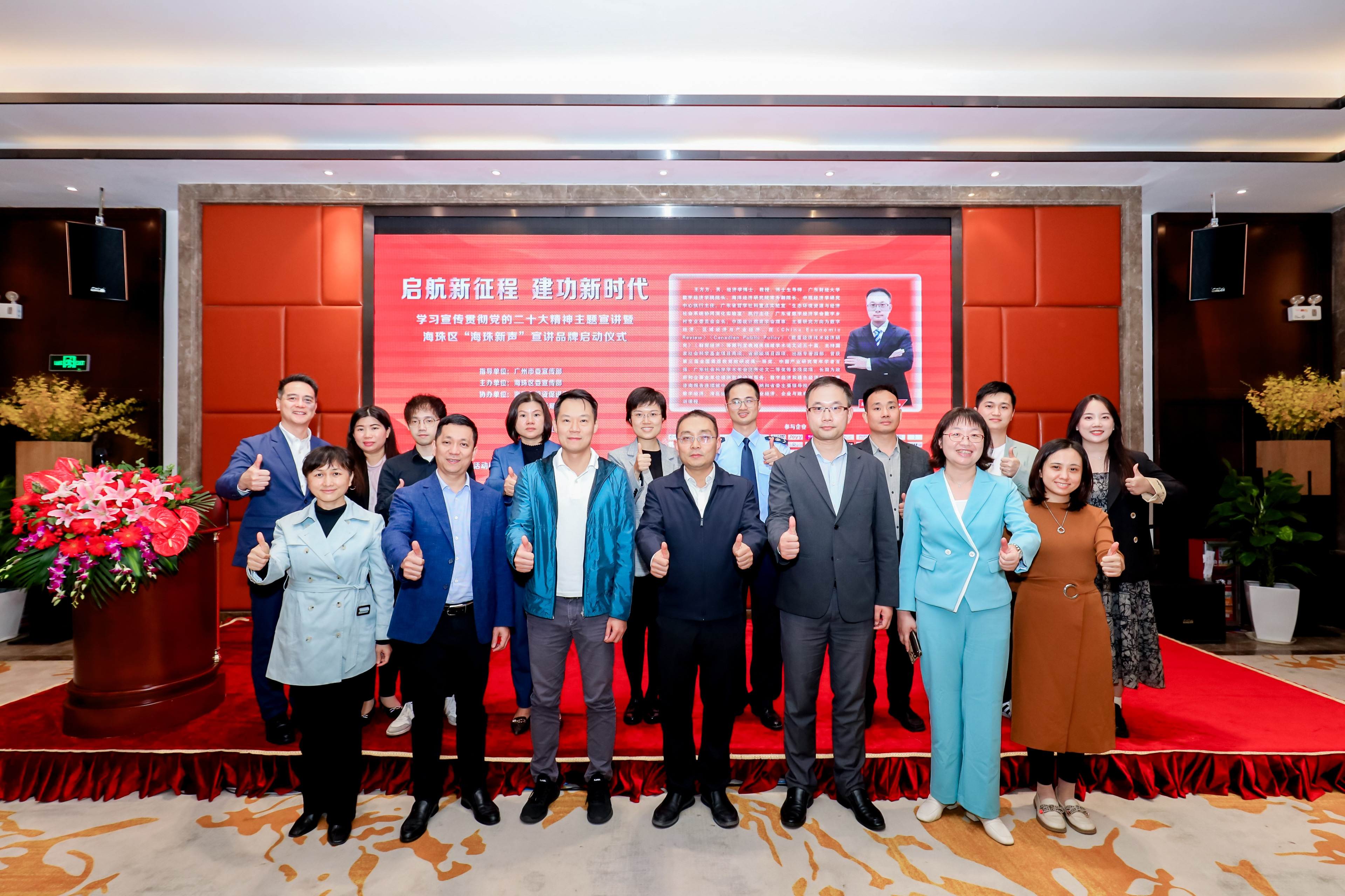 為深入學(xué)習(xí)貫徹黨的二十大精神和習(xí)近平新時(shí)代中國(guó)特色社會(huì)主義思想,深刻感悟和率先響應(yīng)習(xí)總書(shū)記近期親臨廣東、廣州的關(guān)懷厚愛(ài)、殷切期望和信任重托,凝心聚力共謀高質(zhì)量發(fā)展,4月27日,由海珠區(qū)委宣傳部主辦的“啟航新征程 建功新時(shí)代——學(xué)習(xí)宣傳貫徹黨的二十大精神”主題宣講活動(dòng)在海珠區(qū)工美港國(guó)際數(shù)字創(chuàng)新中心舉行。本次活動(dòng)發(fā)布了“海珠新聲”宣講品牌,圍繞高質(zhì)量發(fā)展開(kāi)展了主題宣講,進(jìn)一步強(qiáng)化思想理論武裝、傳遞發(fā)展正能量,努力促進(jìn)海珠經(jīng)濟(jì)社會(huì)高質(zhì)量發(fā)展。廣東車海洋環(huán)??萍加邢薰荆ㄏ路Q“車海洋”)董事長(zhǎng)艾宗文、董事鄢榮華受邀出席。