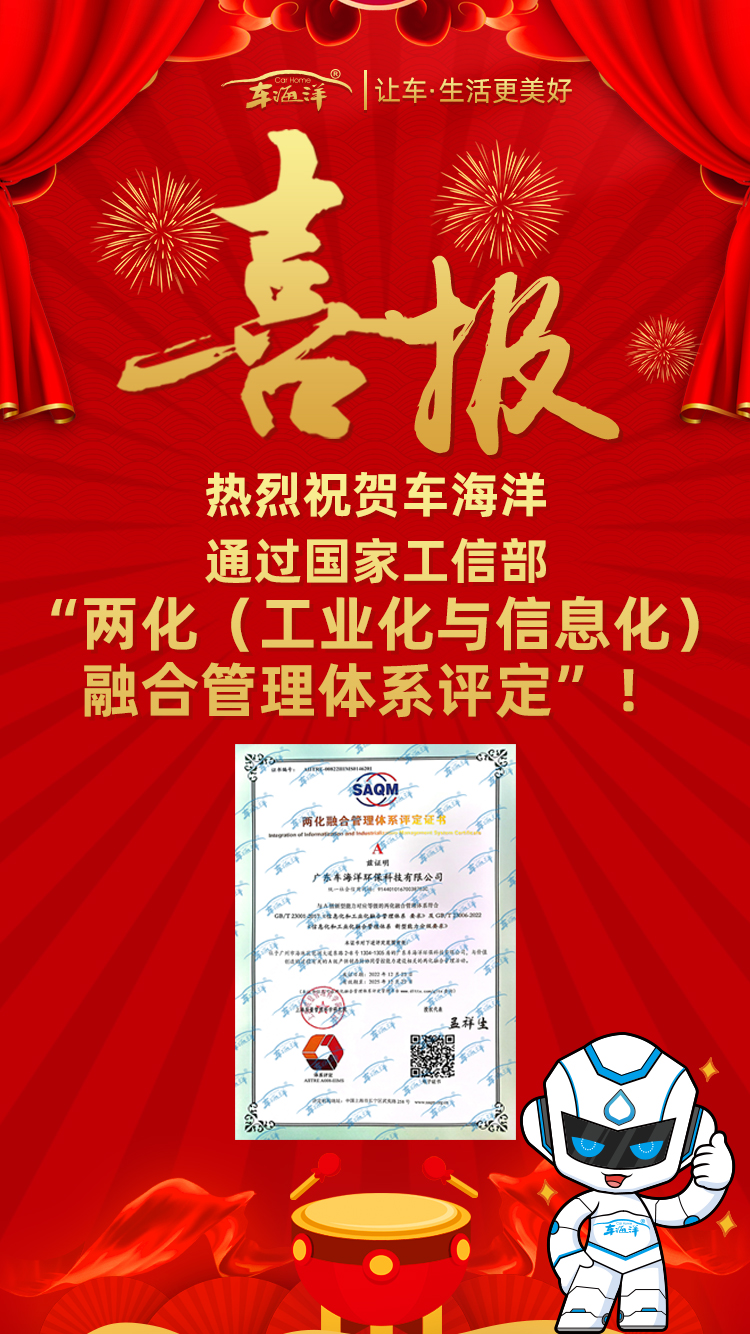 這意味著車海洋“與A級(jí)新型能力對(duì)應(yīng)等級(jí)的兩化融合管理體系”完全符合GB/T 23001-2017《信息化和工業(yè)化融合管理體系 要求》及GB/T 23006-2022《信息化和工業(yè)化融合管理體系 新型能力分級(jí)要求》,在信息化和工業(yè)化深度融合方面取得了系統(tǒng)性、全局性、突破性成果。本次認(rèn)證的順利通過(guò),標(biāo)志著車海洋的信息化和工業(yè)化深度融合再次獲得權(quán)威認(rèn)證,企業(yè)數(shù)字化轉(zhuǎn)型邁上新臺(tái)階,在中國(guó)智能自助洗車行業(yè)中處于領(lǐng)先地位。