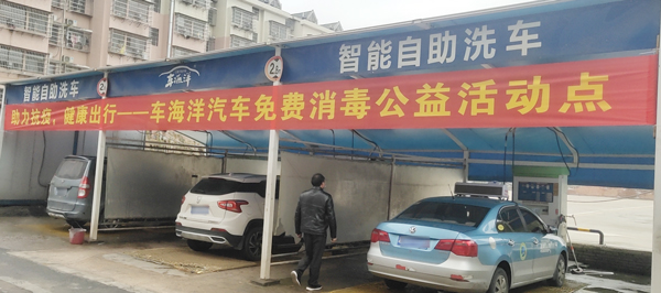 湖南車海洋自助洗車機在抗疫一線為車主免費消毒