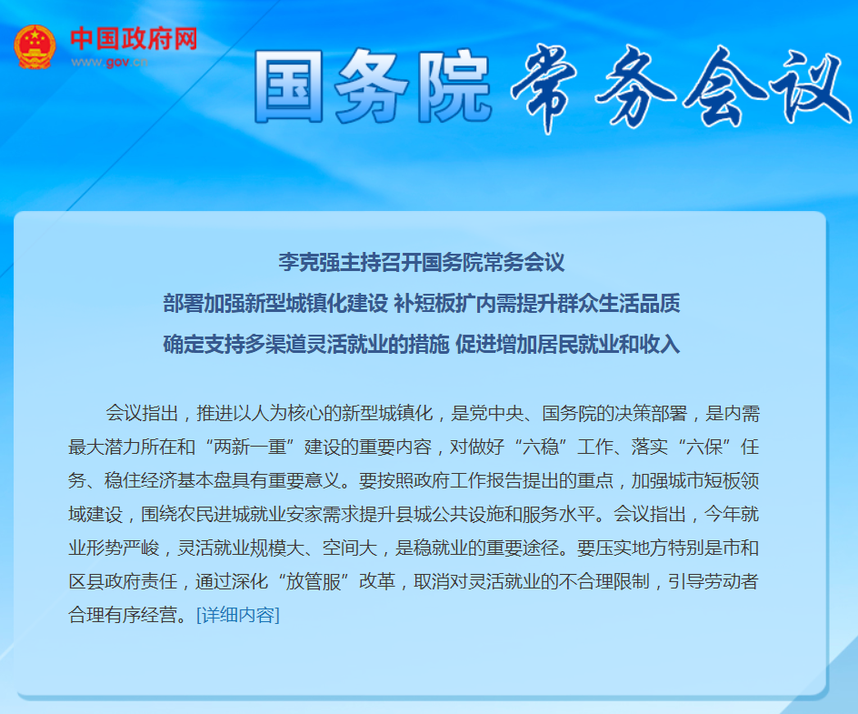 李克強主持召開國務院常務會議 部署加強新型城鎮(zhèn)化建設等