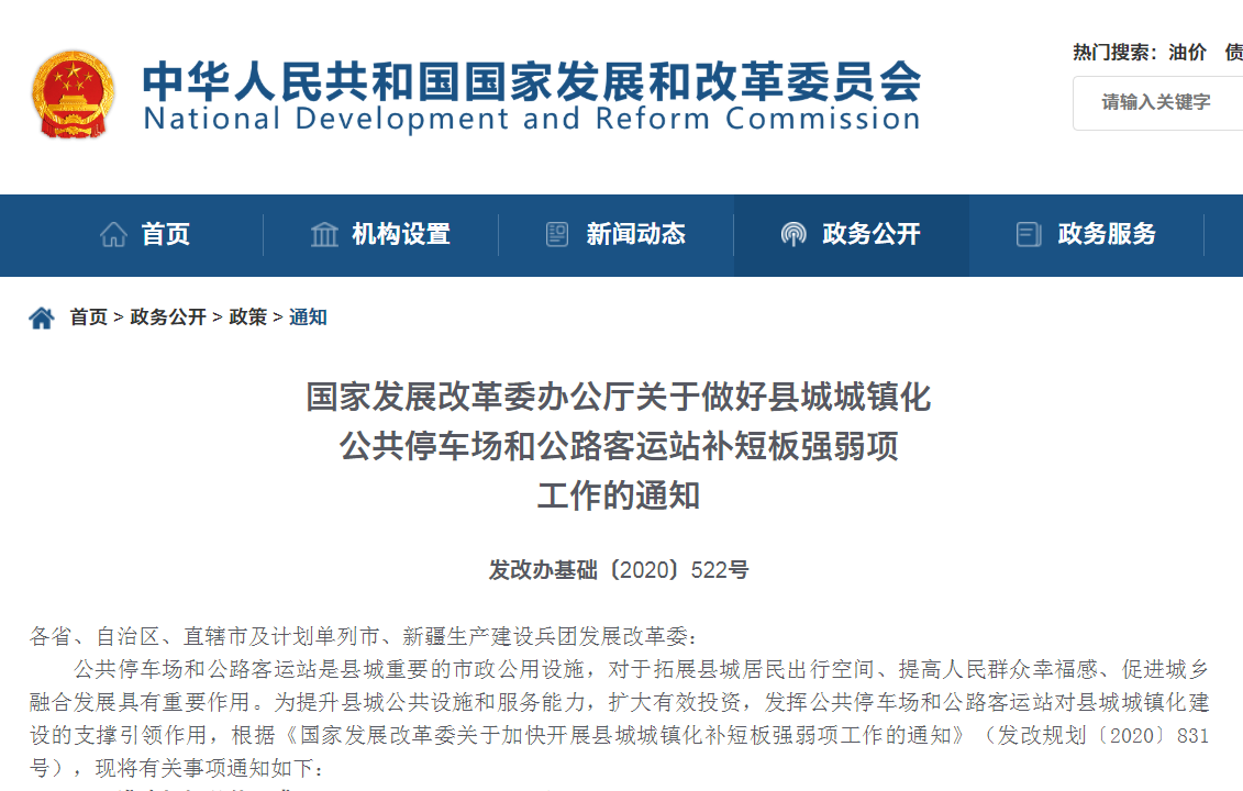 國家發(fā)展改革委辦公廳關于做好縣城城鎮(zhèn)化公共停車場和公路客運站補短板強弱項工作的通知
